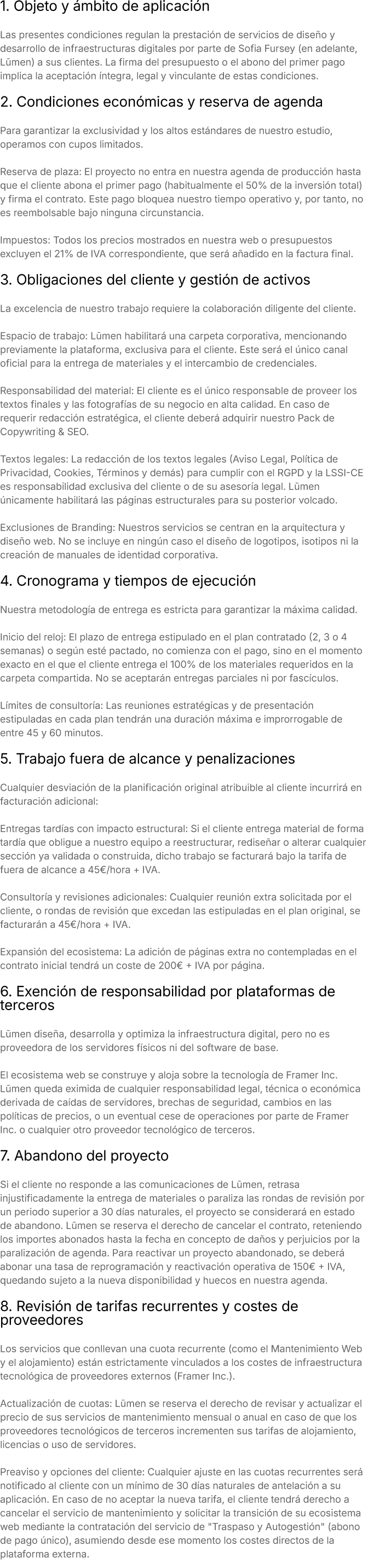 Terminos y Condiciónes de contratación